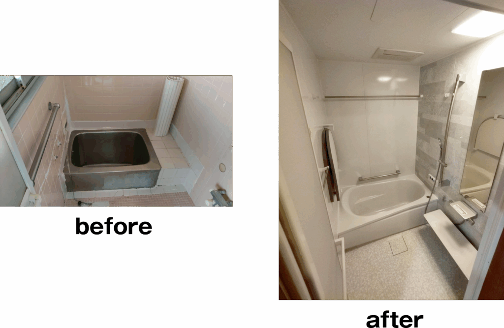 冷たいタイル貼りの浴室を暖かい暖房付きのユニットバスに変更することで、滑りにくい安全な床とお湯が冷めにくい省エネ浴槽で快適で安心の浴室空間に生まれ変わります。
