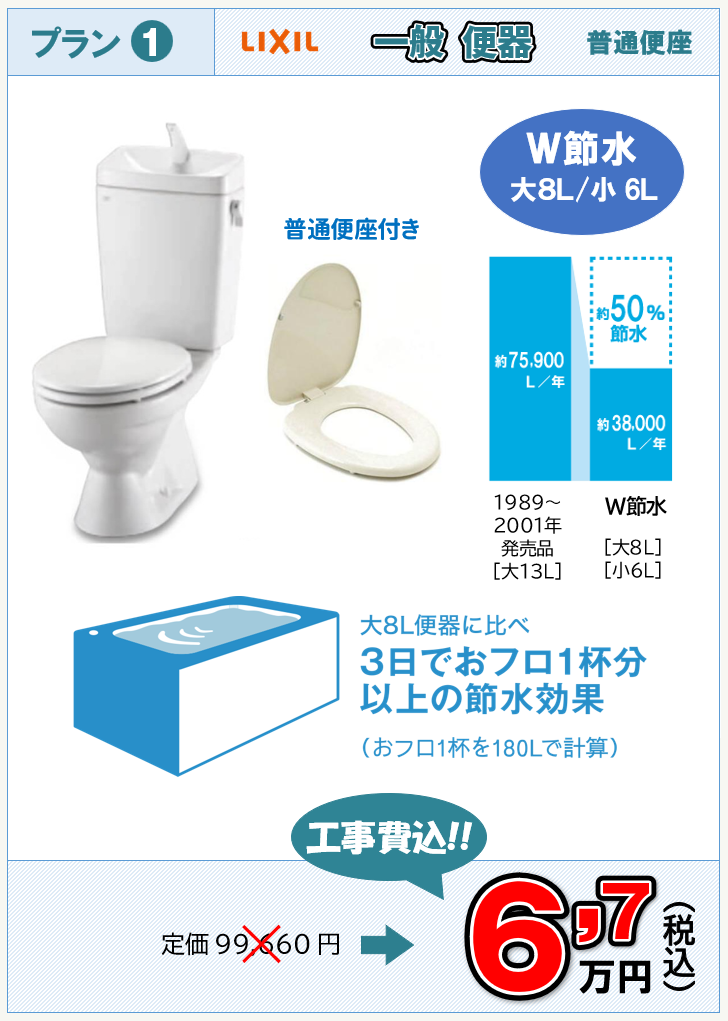 標準工事費全部まとめてコミ込み価格のトイレリフォームパックです!